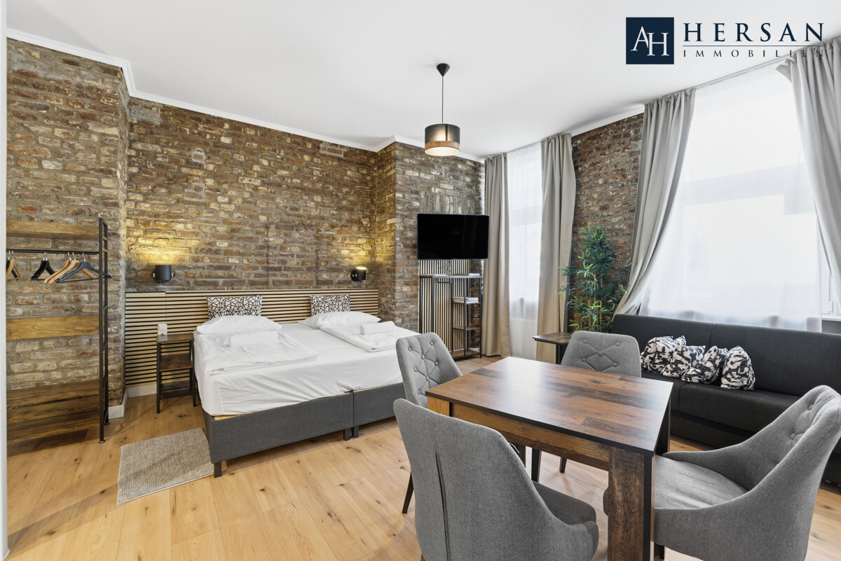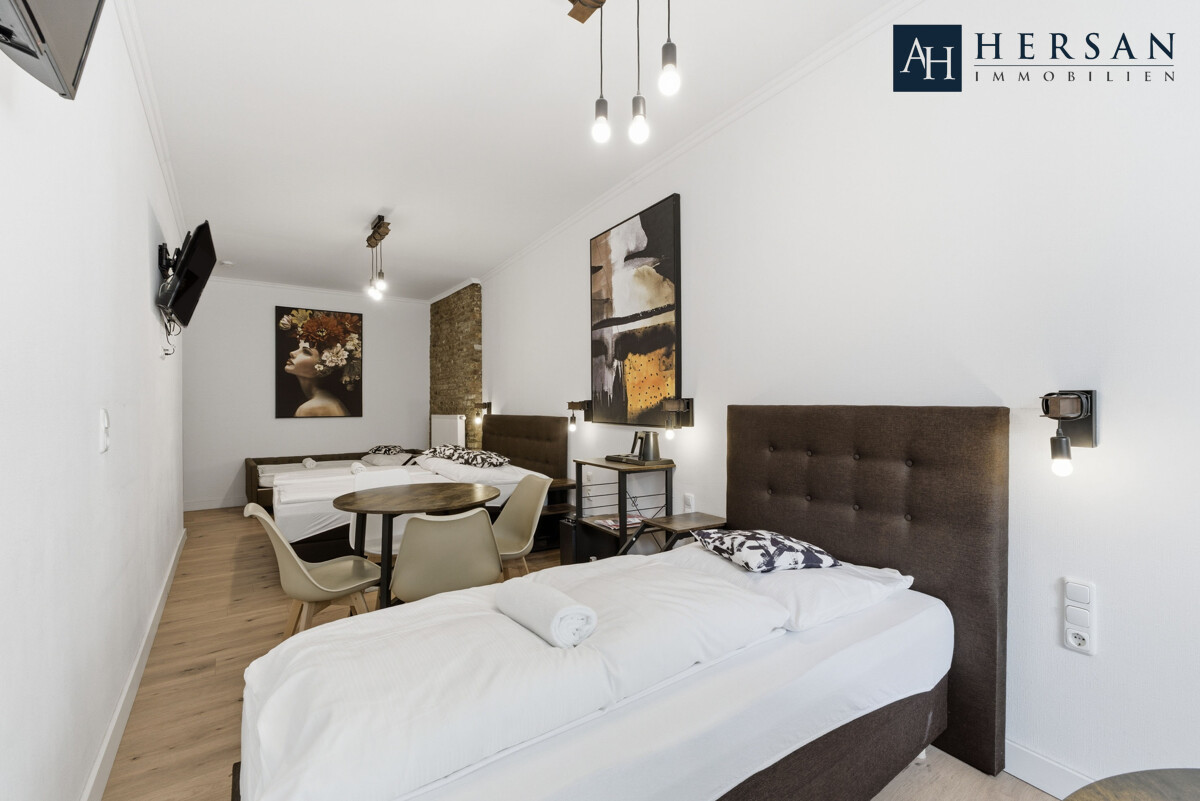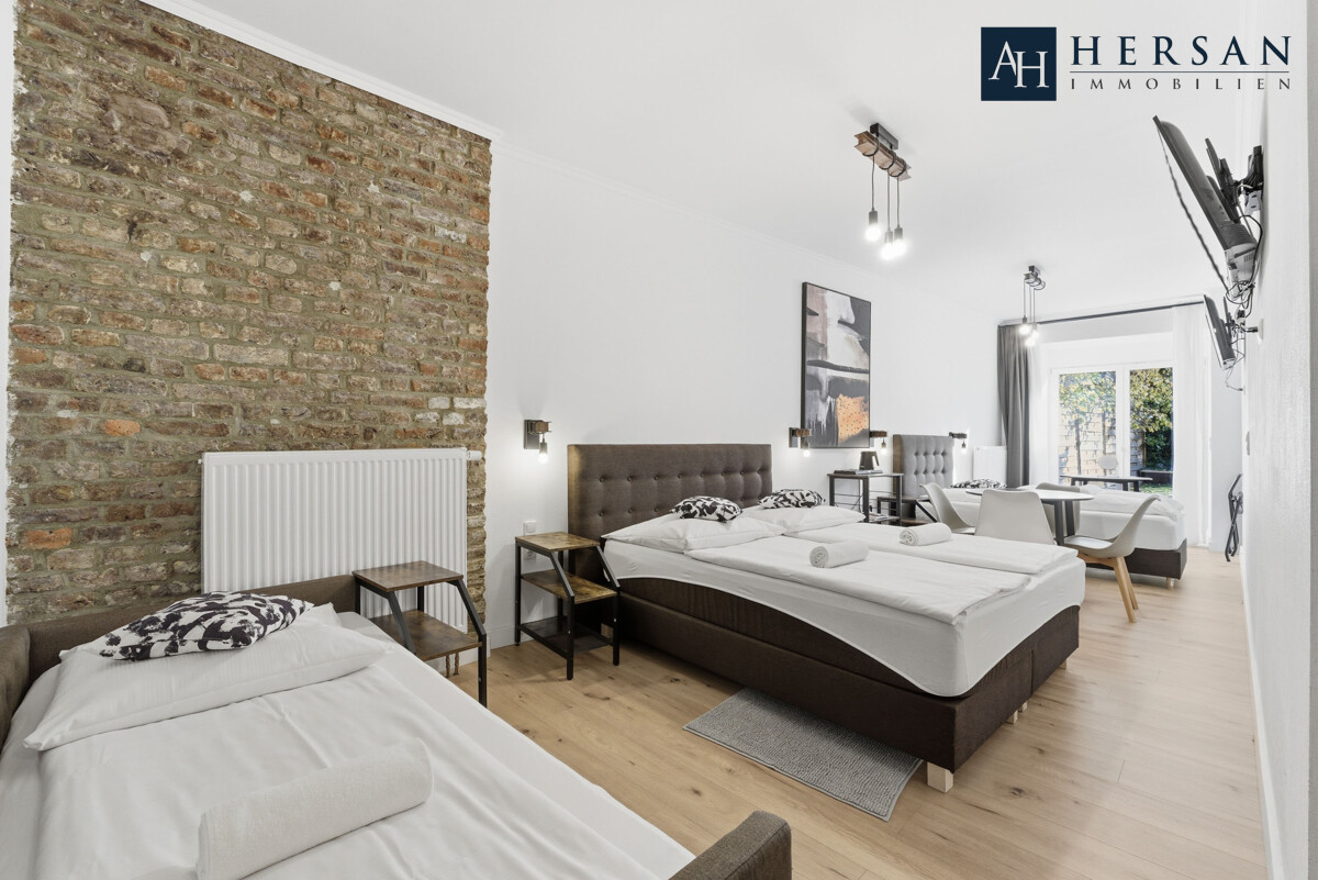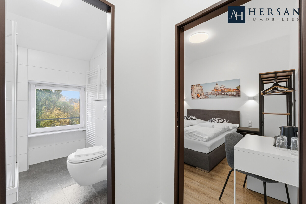 Kernsaniertes Hotelgebäude mit zehn Zimmern in einer begehrten Lage in Aachen – eine Immobilie, die durch exzellente Lage, hochwertige Ausstattung und moderne Gestaltung überzeugt. Das Gebäude mit einer Gesamtfläche von über 431,00 m² bietet ausreichend Platz, um Gäste willkommen zu heißen und sich zugleich als Boardinghouse zu eignen. Zu den Highlights zählen ein freundlicher Speisesaal mit Küche, lichtdurchflutete Zimmer mit eigenem WC und Bad sowie mehrere Zimmer mit eigener Küchenzeile. Die sonnenverwöhnte Terrasse und der pflegeleicht angelegte Garten auf dem insgesamt ca. 380,00 m² großen Grundstück runden das Profil ab.