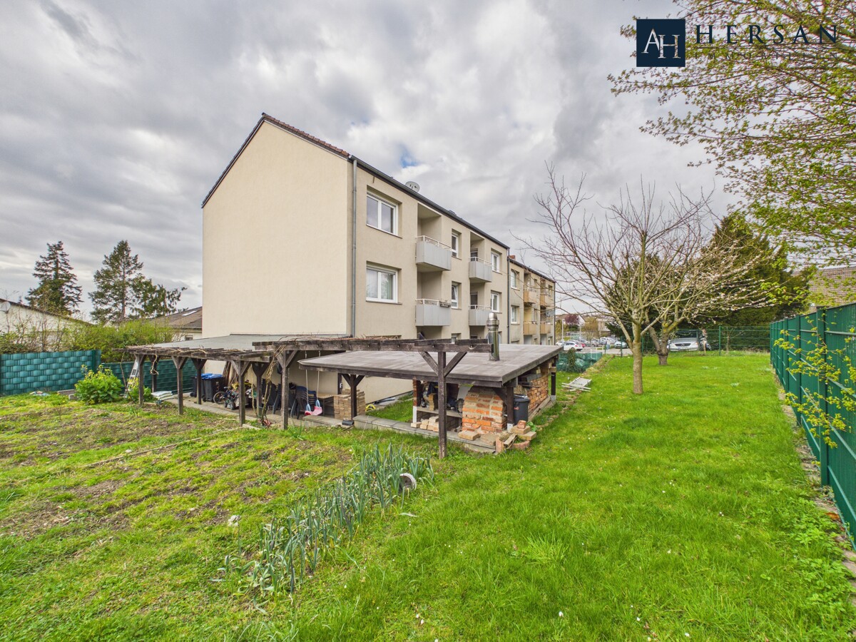 Jede Einheit verfügt über einen Balkon mit Blick in den gepflegten, weitläufigen Garten. Eine überdachte Terrasse ergänzt den Außenbereich. Das Haus ist vollunterkellert und bietet zusätzlich ca. 231,60 m² Nutzfläche im Keller- und Dachgeschoss.