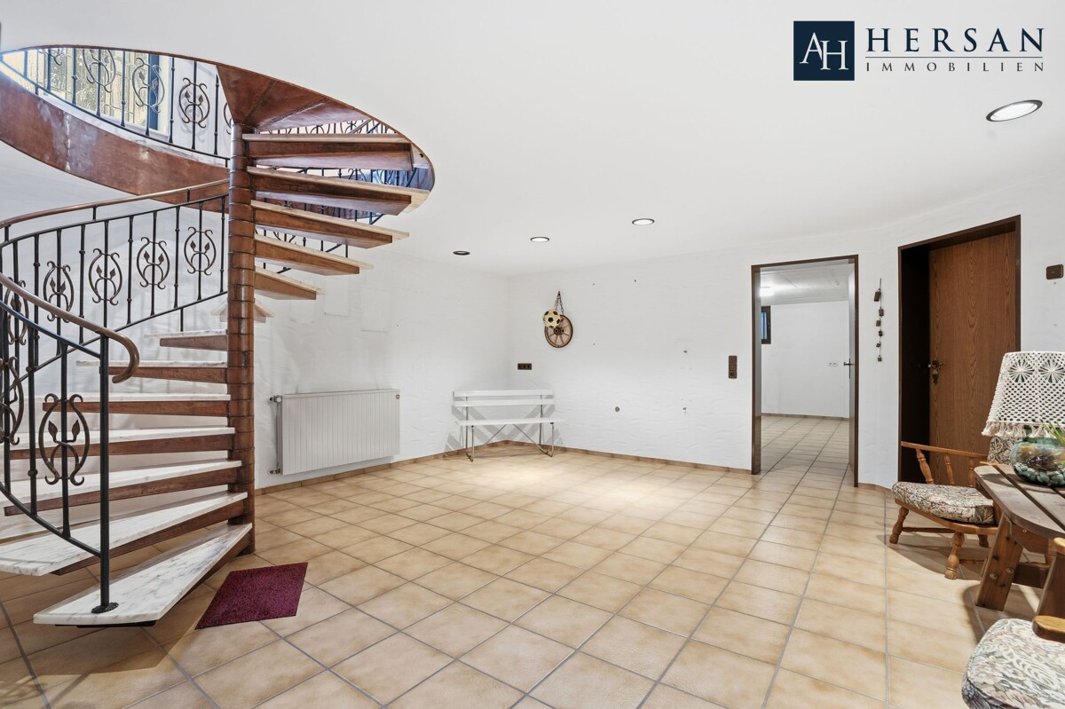 Der voll unterkellerte Bereich mit hohen Decken und Fenstern bietet vielfältige Nutzungsmöglichkeiten, beispielsweise als Hobby-, Arbeits- oder Abstellfläche. Eine Nutzung einzelner Räume als Kinder- oder Gästezimmer ist denkbar, jedoch nicht als Wohnfläche ausgewiesen.