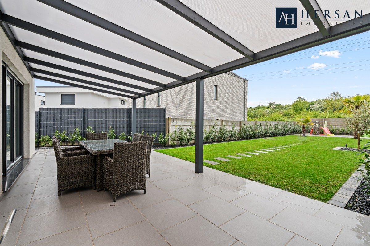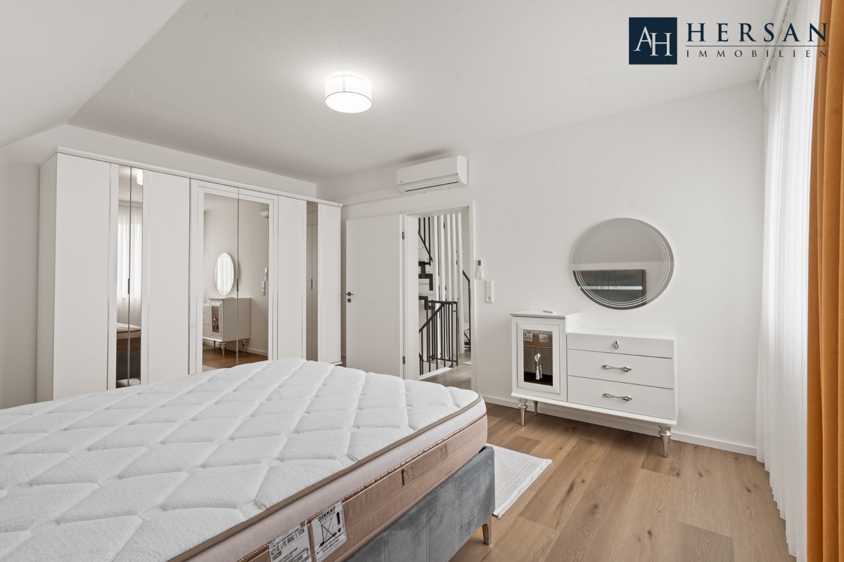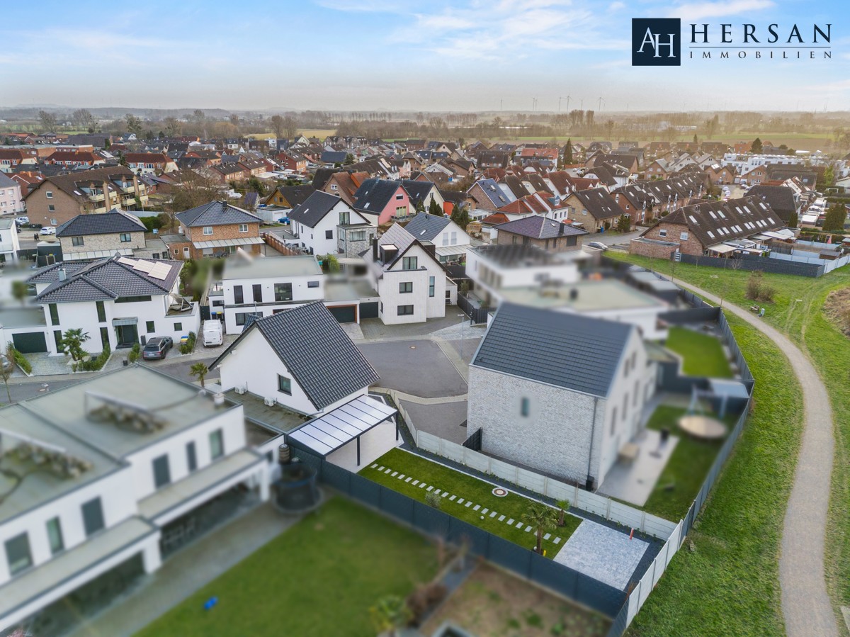 Direkt im Neubaugebiet "Spinnerei" steht dieses außergewöhnliche, freistehende Einfamilienhaus. Auf zweieinhalb Etagen bietet es Ihnen alles, was die moderne Familie von Heute braucht. Die überdachte Terrasse lädt in den Sommermonaten die ganze Familie ein, Zeit im Freien zu verbringen. Sie können sich entweder einen Schatten- oder Sonnenplatz aussuchen. Nicht nur Sie als Erwachsene kommen auf ihre Kosten, sondern auch Ihre Kinder. Sie können in der Natur spielen und Sie brauchen sich keine Sorgen um den Verkehr machen. Der Eingangsbereich bietet neben einem versteckten Hauswirtschaftsraum ein geschmackvolles Gäste-WC mit Fenster direkt am Eingang des Hauses. Der direkte Blick auf die exklusive Wohnküche und hochwertigen Geräten hat den WOW-Effekt. Hier ist an alles gedacht, was man zum Kochen braucht und natürlich jede Menge Stauraum. Auch das Essen kann direkt in der Küche serviert werden, was zum Beispiel das Frühstück vor der Schule oder Arbeit enorm erleichtern wird. Direkt im Anschluss ist der Wohnbereich mit direktem Zugang zur Terrasse und Garten. Aber auch die Schlafräumlichkeiten im Obergeschoss mit der intergierten Klimatisierung, die für angenehme Temperaturen und einen erholsamen Schlaf sorgt, möchten hervorgehoben werden. Dieses Einfamilienhaus schafft eine moderne Atmosphäre und verleiht dem Wohnraum eine stilvolle Note.